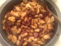 Okay so I did a trial run of some food for the Cockneymoot. Honey chicken which was excellent, bacon and beans, buttered carrots and Highgarden pears poached in wine. The pears were amazing, really good balance of saffron, honey, wine and cinnamon. So, defo on the list for April!