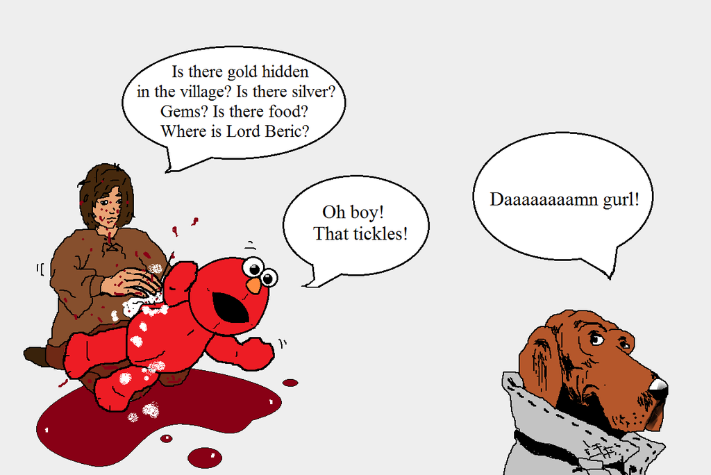 In the light of GoT's depiction of Jaime and Cersei at Joff funeral, I now regret my drawing of that scene for this collection. It is not funny, and now it's just uncomfortable. I'm considering re imagining that chapter, but I'm not sure what the art would be if I replace it.