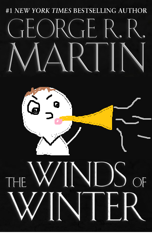 So I'm still listening to the episode, but I was completely inspired to do cover art for the Winds of Winter - I was just as subtle as the website you guys refer to. I went a little Picasso on it too...