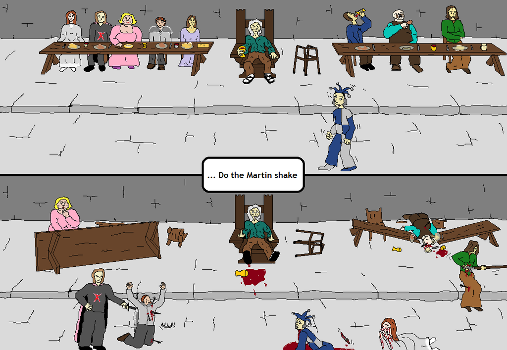 I know we're still a few chapters away, but I've been thinking about the red wedding. I think it would be really cool if we had as many people as are interested all draw their own version. There is no precedent for this sort of thing, but since it is such a momentous and moving scene I think it deserves special service. A variety of interpretations would be wonderful and it would remove all the pressure from one person. If this potential break in protocol is unnerving and unacceptable, then I fully understand, but I think it would be neat. Also, if I'm wrong and no one is actually interested in drawing it, then that's fine too I guess.